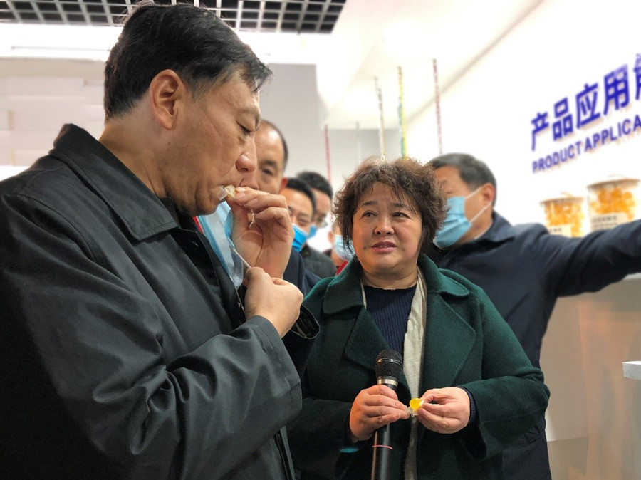 在公司產(chǎn)品展臺(tái),張維寧副主任詳細(xì)了解了公司在產(chǎn)品應(yīng)用解決方案、天然提取物活性成分研發(fā)和天然保健食品開發(fā)情況,并饒有興趣地品嘗了公司開發(fā)的糖果、天然飲品,稱贊公司的產(chǎn)品“不但色味俱佳,而且有益健康,真正抓住了大眾的消費(fèi)需求,一定會(huì)越來越受到市場(chǎng)的歡迎”。